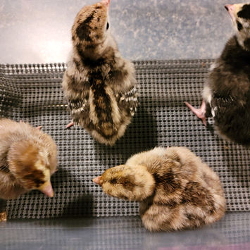 The Narragansett color pattern contains black, gray, tan, and white. Its pattern is similar to that of the Bronze. The Golden Narragansett